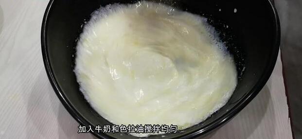 加入蛋黄后,也是用“之”字型搅拌。搅拌至面糊光滑无颗粒状态就行了。