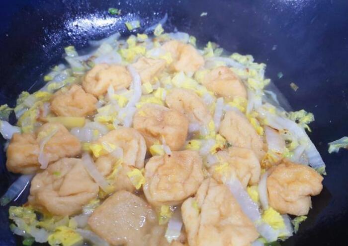 3.倒入豆泡,翻炒。