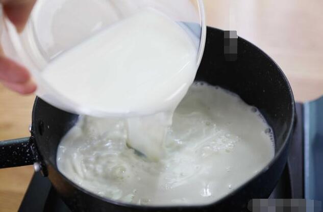第五步:过程中要不停的搅动牛奶,使其能完全融合,关火稍微待凉后滴入柠檬汁再搅动均匀