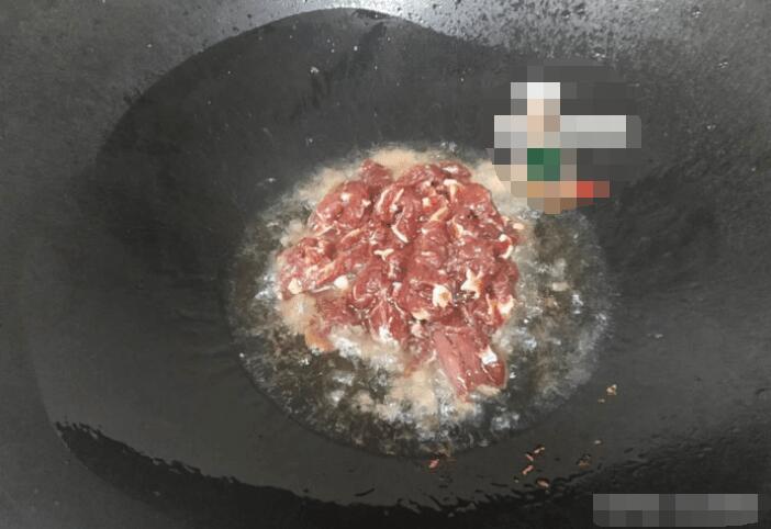 5、热锅凉油放入牛肉炒至变色,装盘备用。