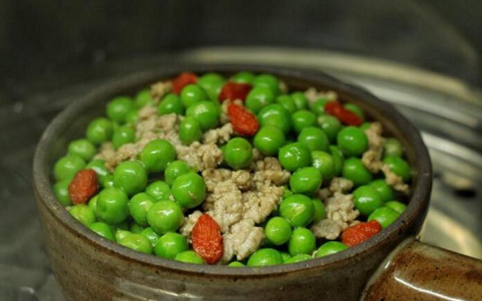 新鲜吃法豌豆肉末蒸玉子豆腐