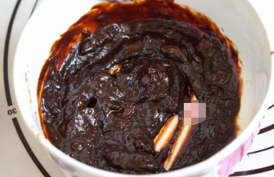 2、准备酱料,甜面酱、干黄酱、豆瓣酱按照2:2:1的比例放入碗中,搅拌均匀备用。