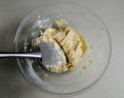 5、用刮刀拌至无干粉状态即可,不要过度翻拌。