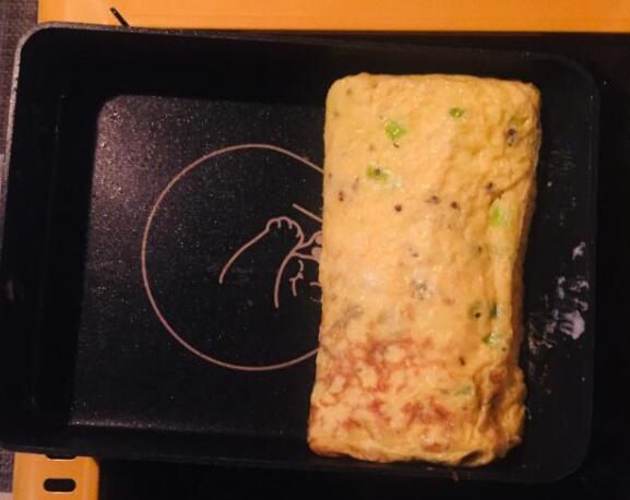 这样一个简单的玉子烧就做好了,然后就可以出锅,装盘了。等到玉子烧冷却下来,就可以切块了。