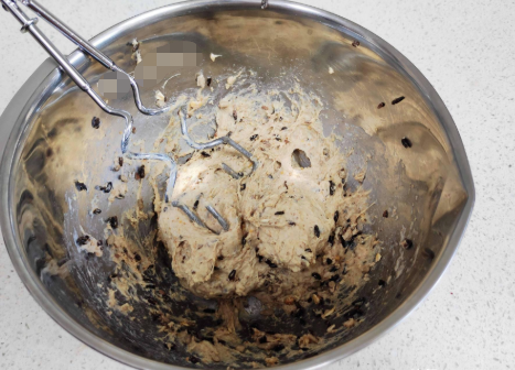 4我偷懒用打蛋器的揉面钩子和的面,用一档大概搅拌了三分钟,如果你没有打蛋器就用筷子搅拌也行,这面团水分比较多所以很粘手,我就不下手揉了,用打蛋器代劳了,当然也可以用筷子代劳哈!