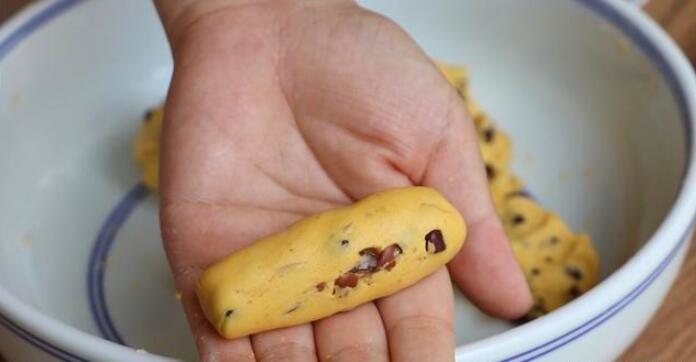 3、取一小团,做成自己喜欢的形状,不要做太大,太大熟的慢。