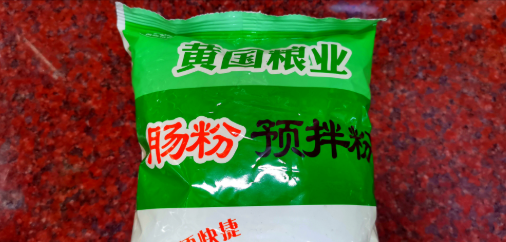 材料:肠粉预拌粉200克,水400克,生粉3小勺,花生油、味极鲜适量。